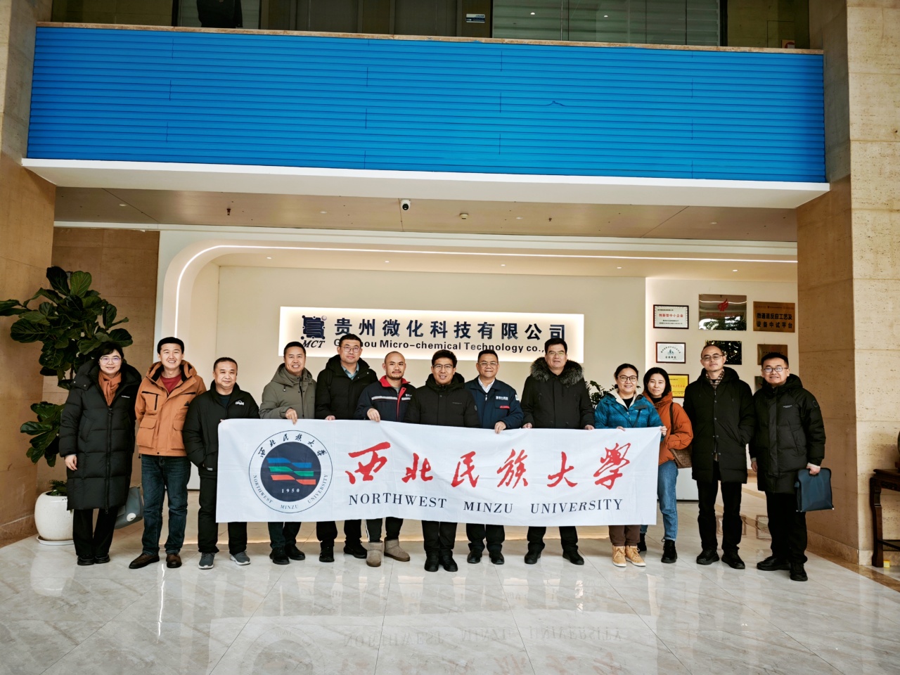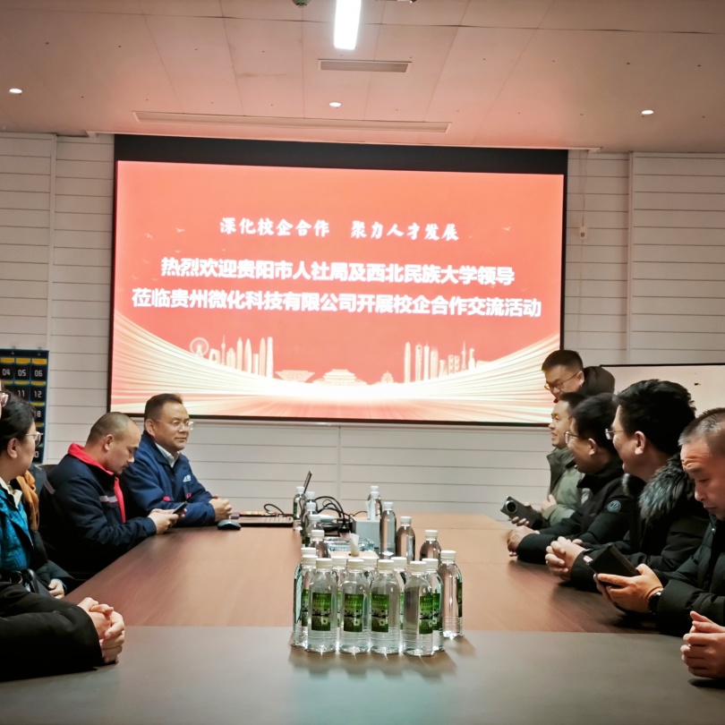 2026年1月22日,西北民族大学化工学院党委书记马巍巍率队,在贵阳市人力资源和社会保障局人才服务中心副主任赵政及相关负责人的陪同下,对贵州微化科技有限公司(以下简称“微化科技”)进行到访交流,开展以“深化校企合作,聚力人才发展”为主题的校企交流活动。双方就化工行业发展趋势、技术人才需求以及校企资源对接等议题进行了深入座谈交流。此次交流活动旨在加强高校与企业之间的联系,探索产学研协同创新与人才培养的新模式。